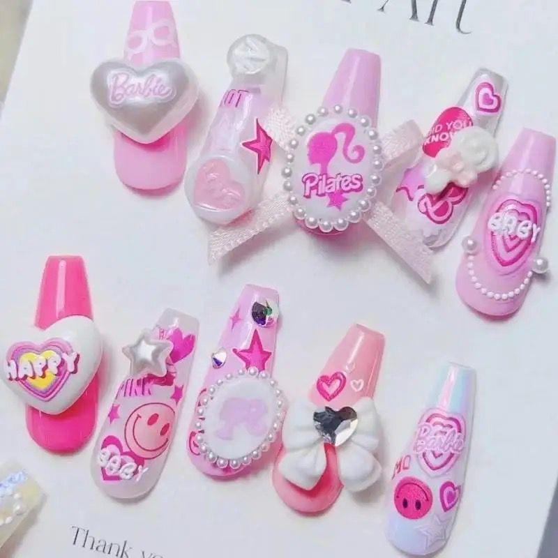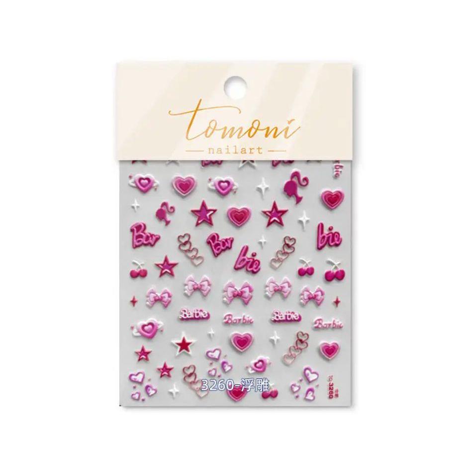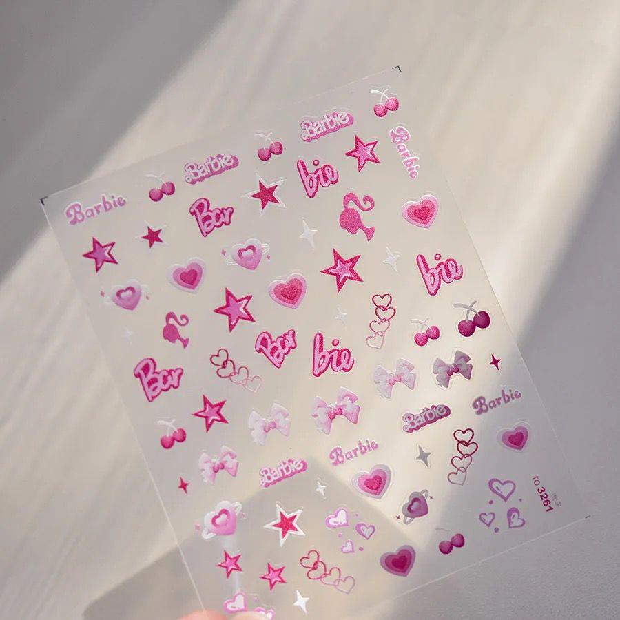 Barbie temalı, pembe ve sevimli figürler içeren 5D kabartmalı tırnak stickerı (Model 3260). Tırnak yüzeyinde hissedilen dokusuyla manikürünüze hareket katar. Kendinden yapışkanlıdır, çocuksu ruhunu yansıtmak isteyenler veya trend tasarımlar için harikadır.