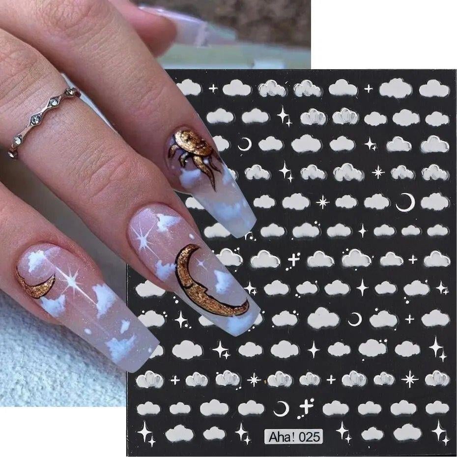 Hayalperest ve yumuşak bir görünüm için beyaz bulut desenli tırnak stickerı. Gökyüzü temalı veya pastel tonlu manikürlerinizi tamamlamak için idealdir. Minimalist ve sevimli tasarımıyla tırnaklarınıza sakin ve huzurlu bir estetik katar.