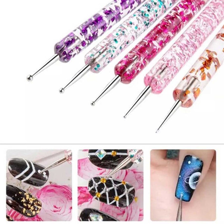 Ellea Nail Simli Dolls Takım 5'li. Şık simli gövde tasarımına sahip 5'li noktalama (dotting) seti. Tırnak süsleme sanatında farklı çaplarda noktalar ve desenler oluşturmak için idealdir. Hem profesyonel salonlar hem de hobi amaçlı nail art tutkunları için dayanıklı ve estetik bir çözümdür.