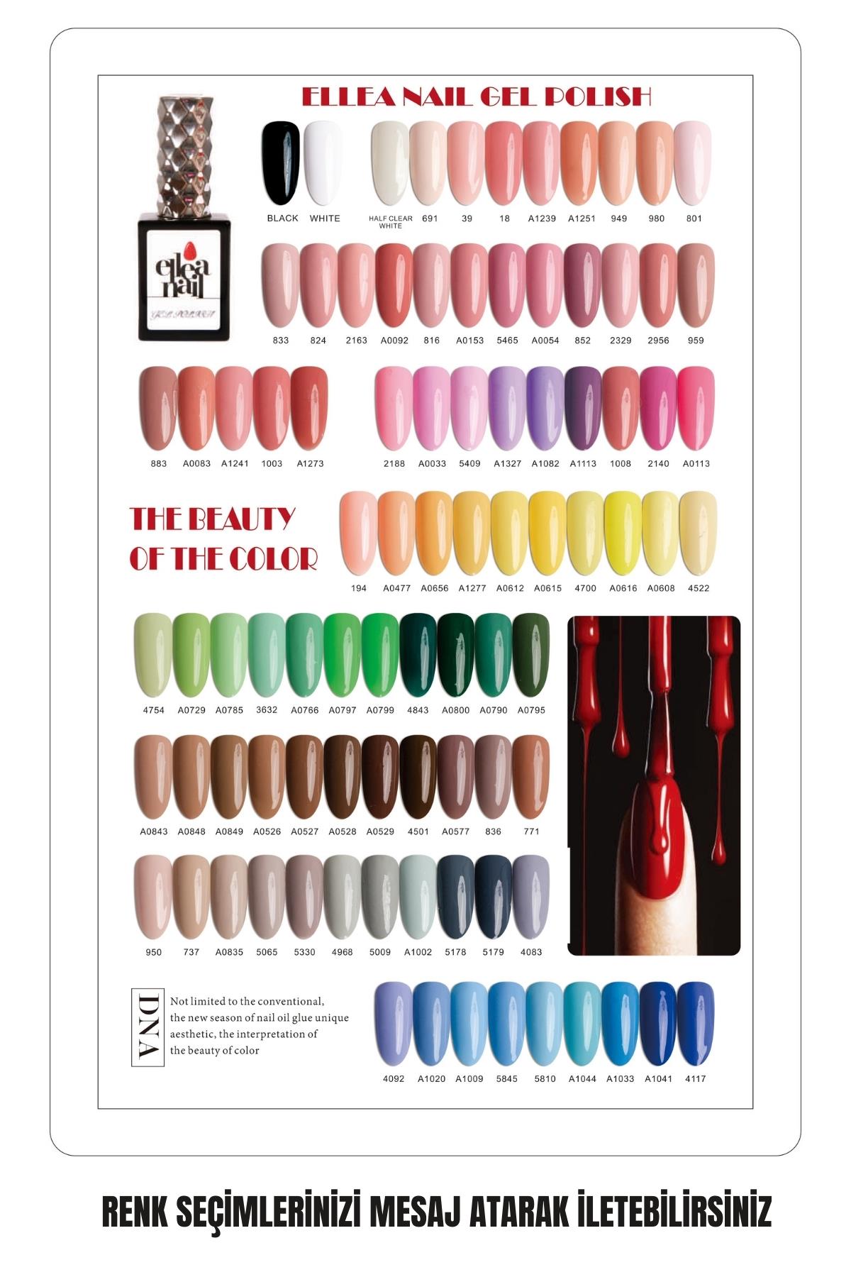 ELLEA NAİL KALICI OJE SETİ 14 ŞUBAT ÖZEL 14 ADET  Ellea Nail Kalıcı Oje Kullanım Talimatı: · Manikürünüzü yapın. ; · Tırnak yüzeyini törpüleyin. ; · Ellea Nail Prımer’i ince bir kat halinde tüm tırnak yüzeyine uygulayın. ; · Ellea Nail Removable Base Gel'i tüm tırnaklara uygulayın ve UV lambada 60-120 saniye boyunca kurutun. ; · Ellea Nail Kalıcı Oje serisinden beğendiğiniz rengi seçin ve tırnaklara uygulayın. ; UV lambada 60-120 saniye boyunca kurutun. ; · Son olarak Ellea Nail Steel Top Gel ile tırnak yüzeyini kaplayın ve işlemi tamamlayın. ; Bu adımları takip ederek, Ellea Nail kalıcı oje serilerinden en iyi sonuçları elde edebilirsiniz. ; Her adımı dikkatlice uygulayarak tırnaklarınızda uzun süre kalıcı ve parıltılı bir sonuç elde edebilirsiniz. ; Ellea Nail kalıcı ojeler, trend renkleriyle tırnaklara canlılık katar ve güçlü formülü sayesinde uzun süre dayanıklılık sağlar. ; Ürün Bilgileri: · Hacim: 15 ml · Kıvam: Orta – sıvı Ellea Nail ile tırnaklarınıza yansıtıcı ve göz alıcı renklerle tarzınızı ortaya koyun. ; Trendleri takip eden ve sağlığınızı önemseyen Ellea Nail kalıcı ojeler ile kusursuz bir manikür deneyimi yaşayın. ; DİKKAT !! Resimler ojelerimizin uygulanmış kartela hali olup,profesyonel çekimlerdir. ; Görmüş olduğunuz renklerin tonları cihazınızın ışık ayarından telefon,bilgisayar ekranından veya ekran kalitesinden dolayı bile farklılık gösterebilir. ; Bunu dikkate alarak sipariş vermenizi rica ederiz. ; Renk tonunu beğenmeme gibi durumlarda İADE veya DEĞİŞİM kesinlikle söz konusu değildir. ; Anlayışınız için teşekkür eder, keyifli alışverişler dileriz.;
